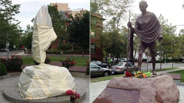 ওয়াশিংটনে গান্ধীমূর্তিতে ‘হামলা’, ঢাকা হলো কাপড়ে